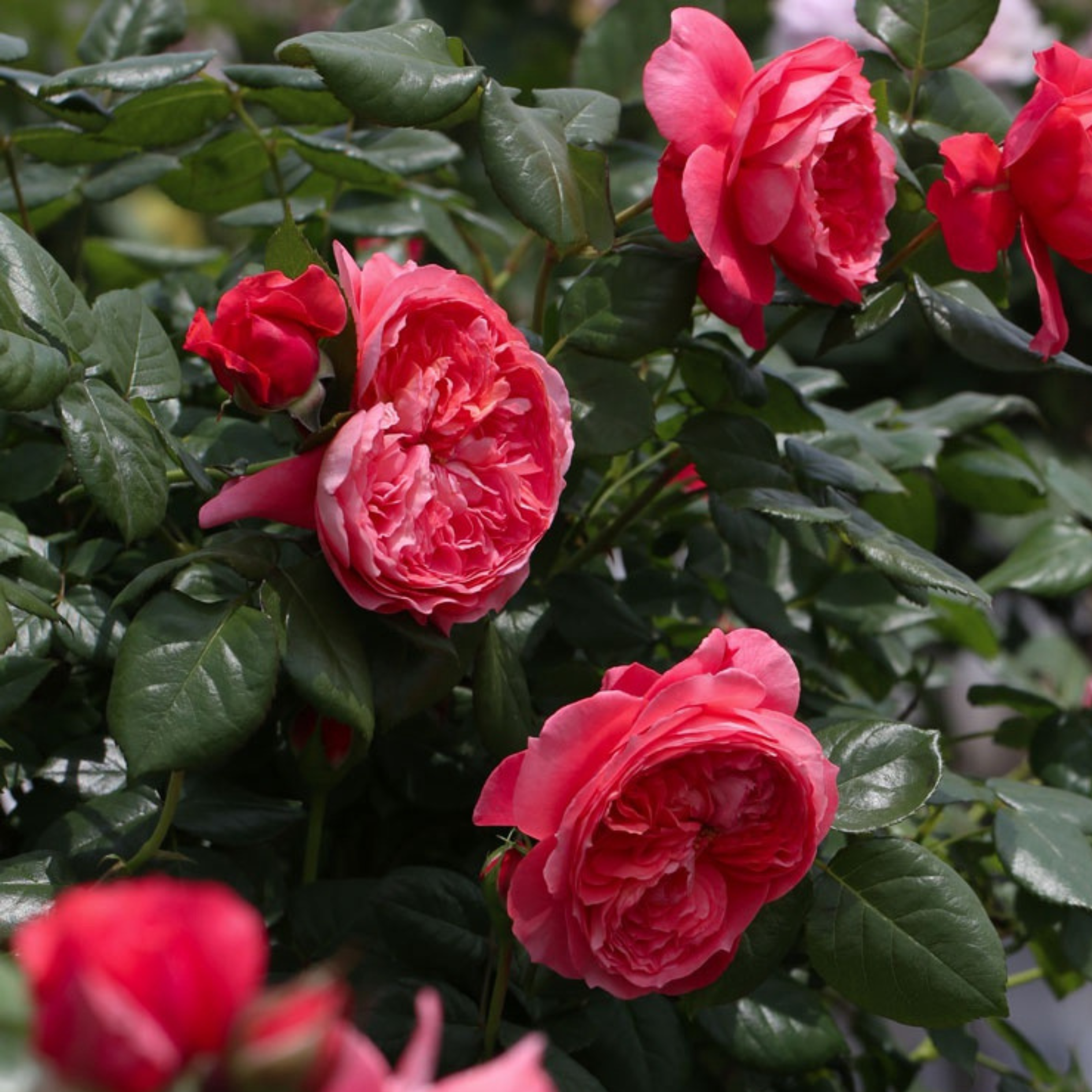 The Summer Fireworks rose is a shrub rose with large flowers of approximately 15cm in diameter. The flower petals are double blooms, with about 30-40 petals in a salmon-pink color. This variety has strong vitality and disease resistance.